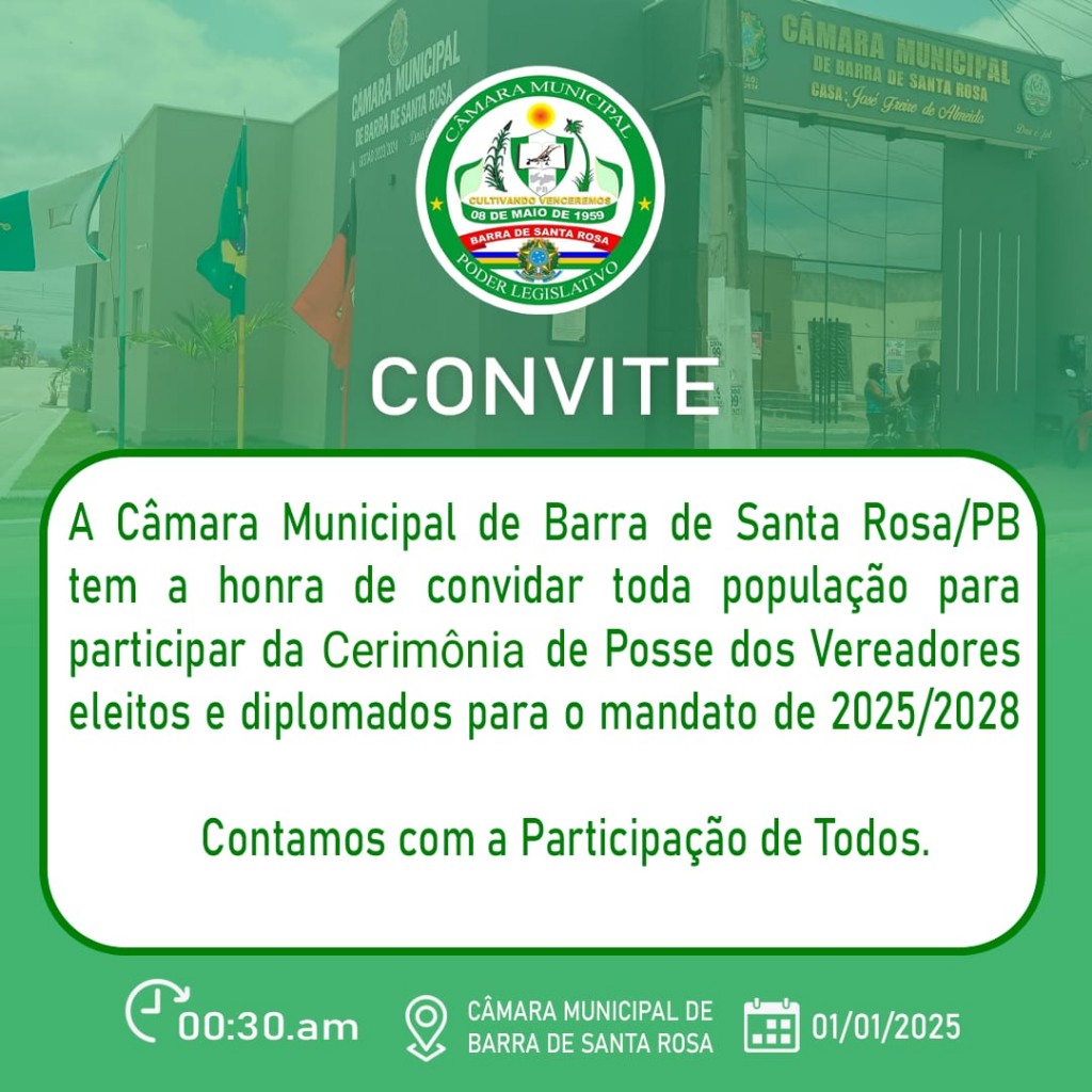 EDITAL DE CONVOCAÇÃO PARA REALIZAÇÃO DE SESSÕES PREPARATÓRIAS DESTINADAS À INSTALAÇÃO E POSSE DA LEGISLATURA 2025/2028, ELEIÇÃO E POSSE DA MESA DIRETORA BIÊNIO 2025/2026 E SESSÃO SOLENE DE POSSE DO PREFEITO E VICE-PREFEITO DIPLOMADOS
