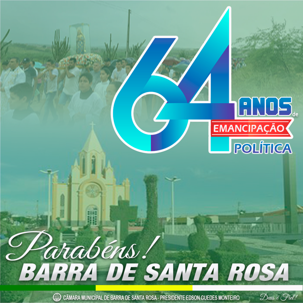Nesta Segunda-feira (08), se comemora o aniversário de uma das cidades mais importantes do Curimataú Paraibano: Barra de Santa Rosa. Mais que uma cidade, é um berço de gente guerreira, parabéns Barra pelos seus 64 anos de emancipação política.